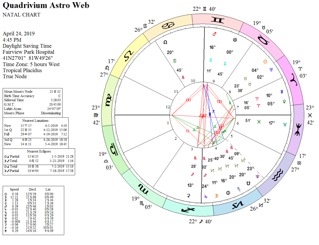 Finally, since I incorporated Quadrivium Astrology as a LLC, there are some interesting chart aspect between this one and the incorporation chart. The next post will go over these aspects.